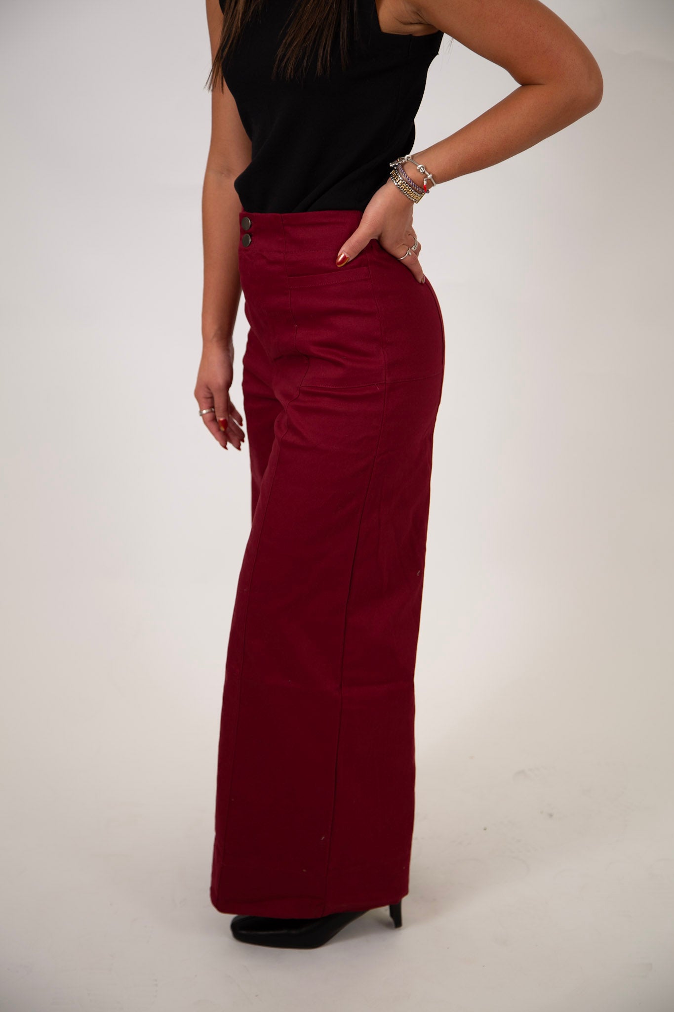 Features - Wide-leg - Stretchy cotton twill fabrics - Ankle-length pants - Two front buttons and zipper closure - Front pockets