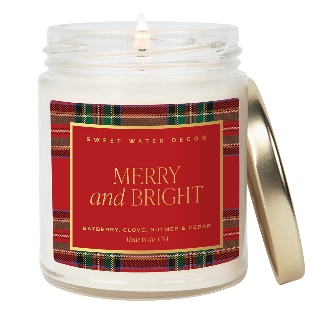 Step into the festive spirit with our Merry and Bright Candle, a warm and inviting Christmas candle that fills your home with the comforting scents of the season. With fragrance notes of bayberry, clove, nutmeg, and cedar, this candle brings to life the cozy feeling of returning home after finding the perfect Christmas tree. Whether you're searching for the perfect holiday decor or thoughtful stocking stuffers, Merry and Bright is a must-have for embracing the magic of Christmas.